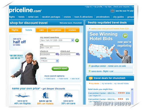 其實Priceline不只可以標飯店,它還有機票、租車等等,不過我沒用過就是了。