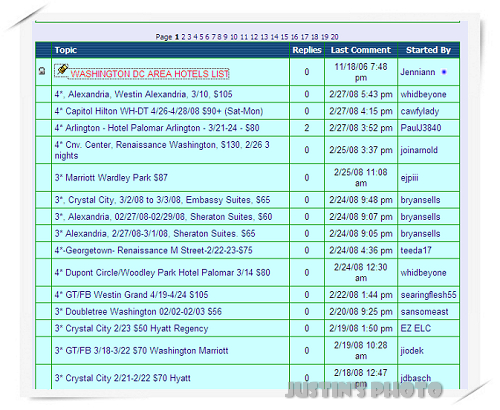 例如我點進去Washington DC Area後可以看到各間旅館、星等及價位,這時可以點進去看大家下標的經過及結果。